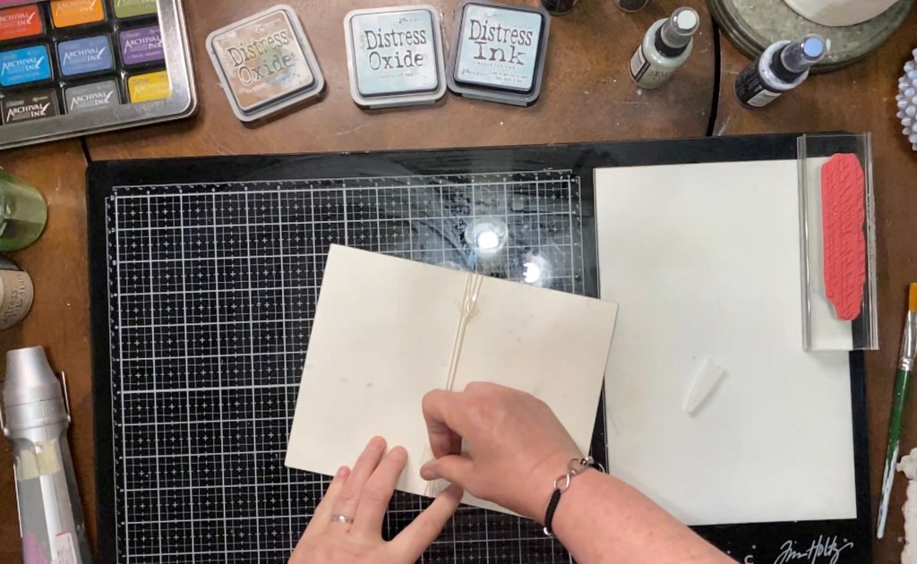 The next thing I did was add just another layer for dimension. I love bakers twine, don’t you? I think I would have it in every color, and I think I almost do. This make, I used a natural twine that matched just perfectly. For this, I like to add two glue dots to the back of the make and just wrap the twine around the page for a few times until I’m happy with it. I think I only wrapped it four times, but it may have been more or less. Just do what makes you happy. I did save the little papers for the glue dots and put them back on them so that the glue dots didn’t bother me while I finished the make.