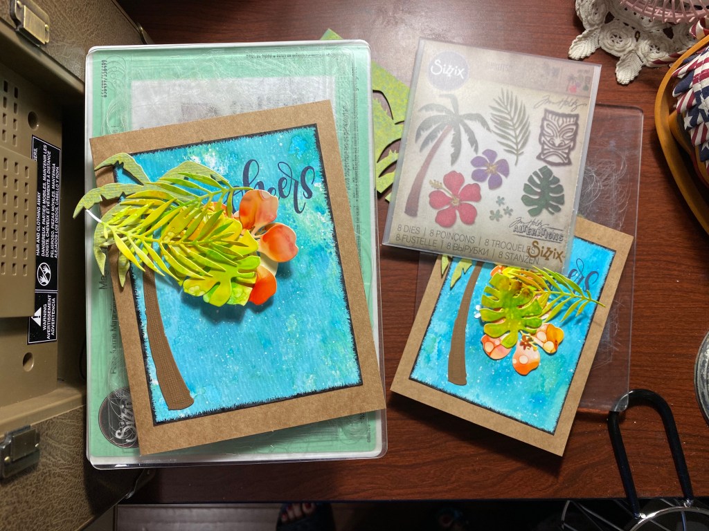 Todays theme for the Simon Says Stamp Wednesday challenge was “Bright & Cheerful”. I have been dying to get my hands on these “Tropical” thinlits from Sizzix and they just came in yesterday. So…….yes, these were the best part of this make. I think, anyway. Margaritas run a pretty close second though. Haha. Todays card was pretty simple. You will see two of everything in this post, because I just knew I was gonna screw up something! Haha. Didn’t happen, surprise, surprise, so now I have two of this cute little beauty. Here’s how it went.