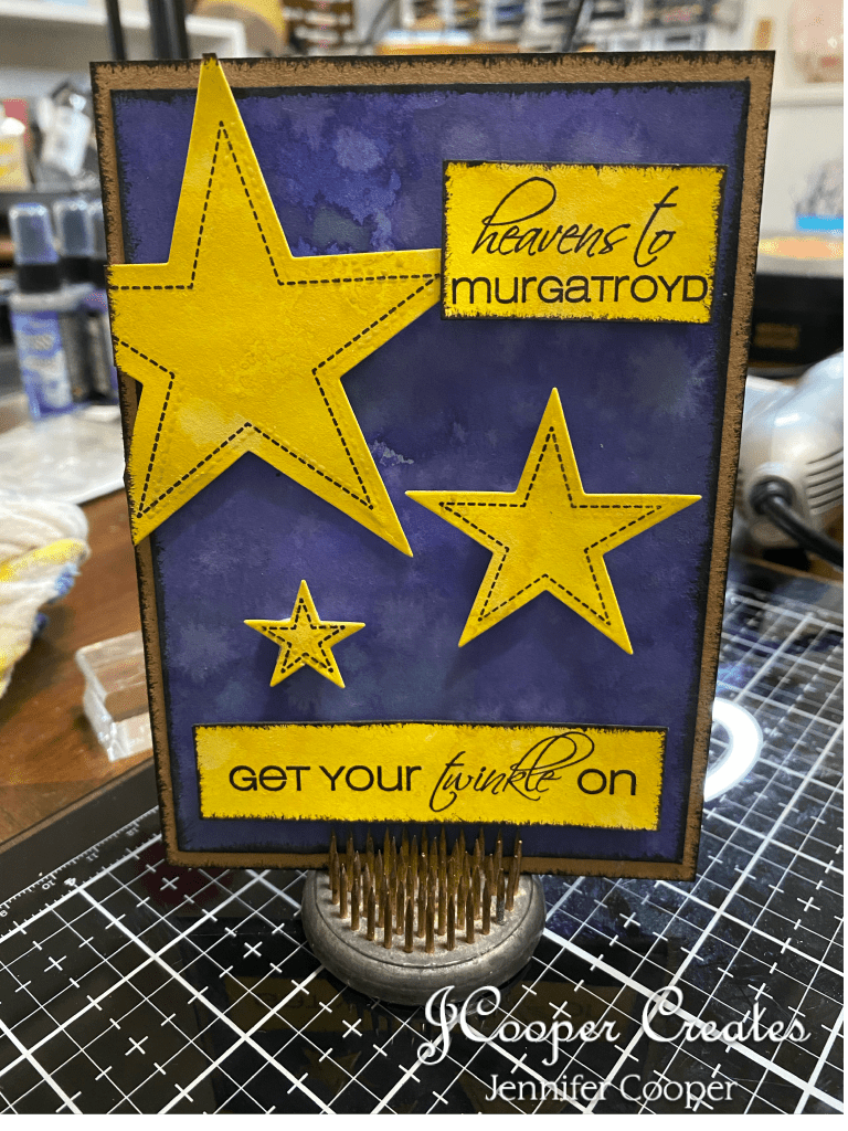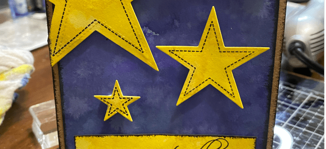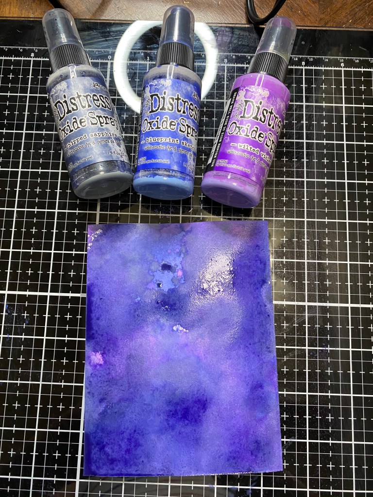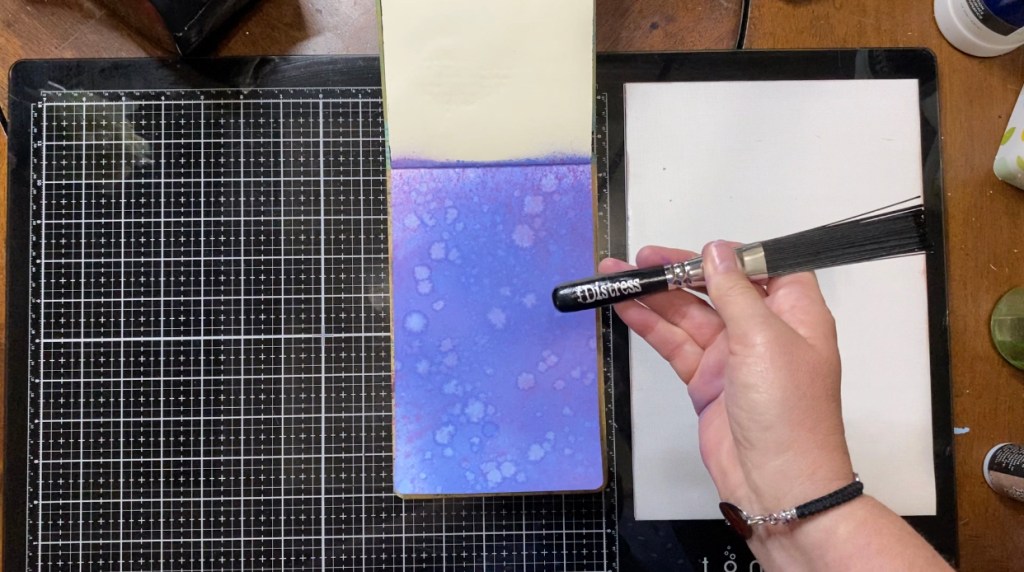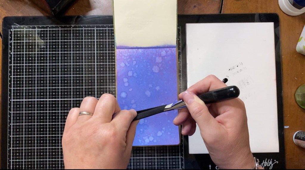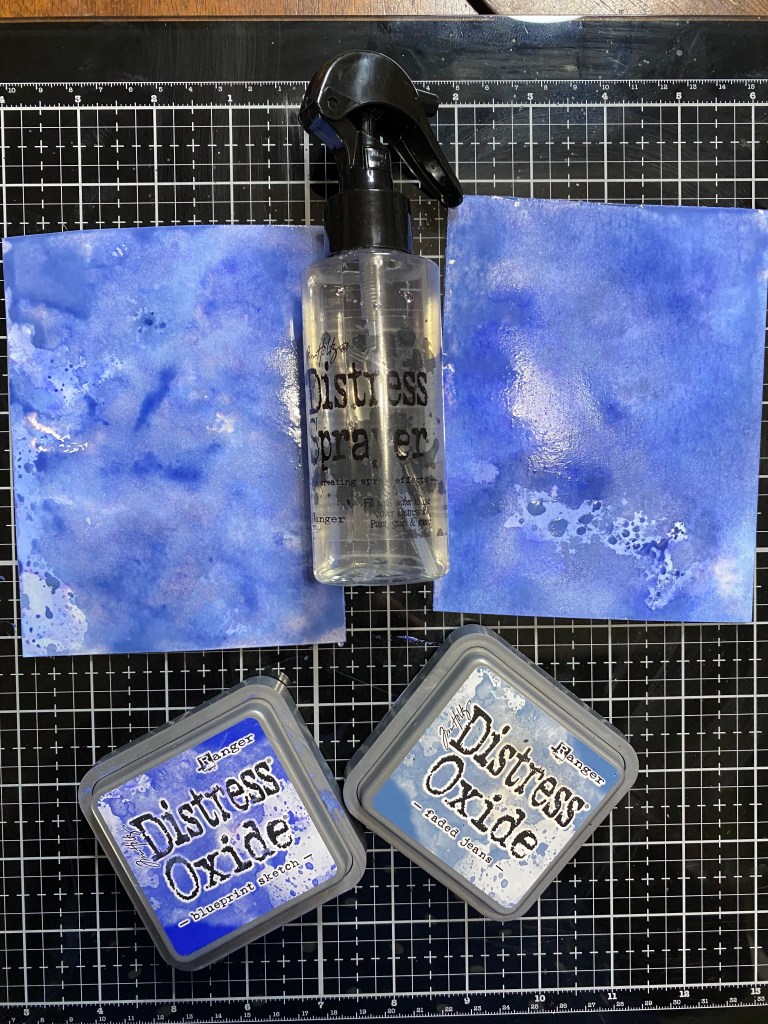Once I was happy with my inky background, I used my original Distress Ink in Vintage Photo, to distress the edges of my paper. For this, I used a blending tool and blending foam. You just simply apply the ink in a circular motion, around the edges of your paper until it makes you happy.