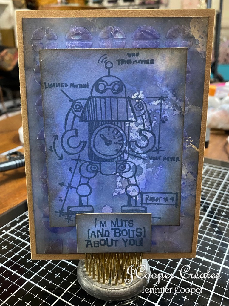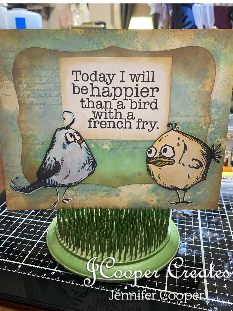 Once my dragonfly was embossed, I couldn’t really decide what to do about my sentiment. But, since I liked the embossed dragonfly so much, I just decided to go the same route with my sentiment. The set I used for the sentiment was the Just Sayings set from Stampers Anonymous. I think this set was made for your big box stores, and i think I purchased it at either Hobby Lobby or Michaels. Once I was happy with the page, I adhered it to the blank card base with my Xpress-It double sided tape.