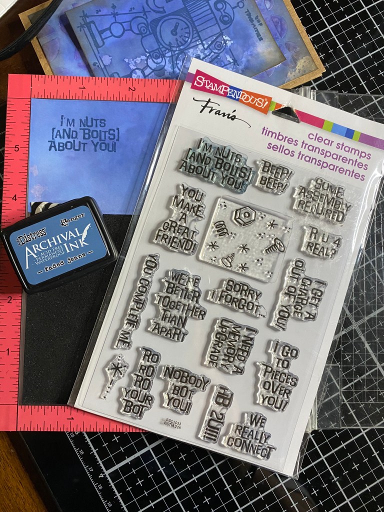 On to the Stampers Anonymous Stamps!! For today’s make, I chose Baroque (CMS400), Classics #1 (SCF001), and Just Sayings (CSS31727). For the background, I chose to use the smaller flourish in the Baroque set. I stamped the image with my Distress Archival in Vintage Photo to match the distressed edges. I figured that would blend in nicely in my background. And, I think it did.